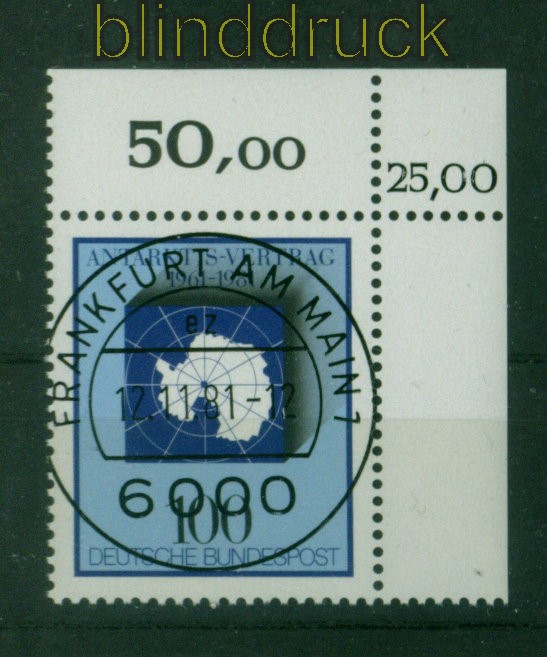 Bundesrepublik Mi # 1117 KBWZ 20 Jahre Antarktis-Vertrag Energiesparen mit korrigierten Bogenwertzähler KBWZ Versandstellenstempel Frankfurt nicht gefaltet Erhaltung siehe Scan
