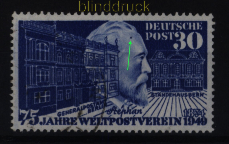 Bundesrepublik Mi # 116 VI gestempelt Plattenfehler Heinrich von Stephan UPU 30 Pfennig Heinrich von Stephan 75 Jahre Weltpostverein UPU mit Plattenfehler VI: blauer Fleck auf der Stirn gestempelt Erhaltung siehe Scan