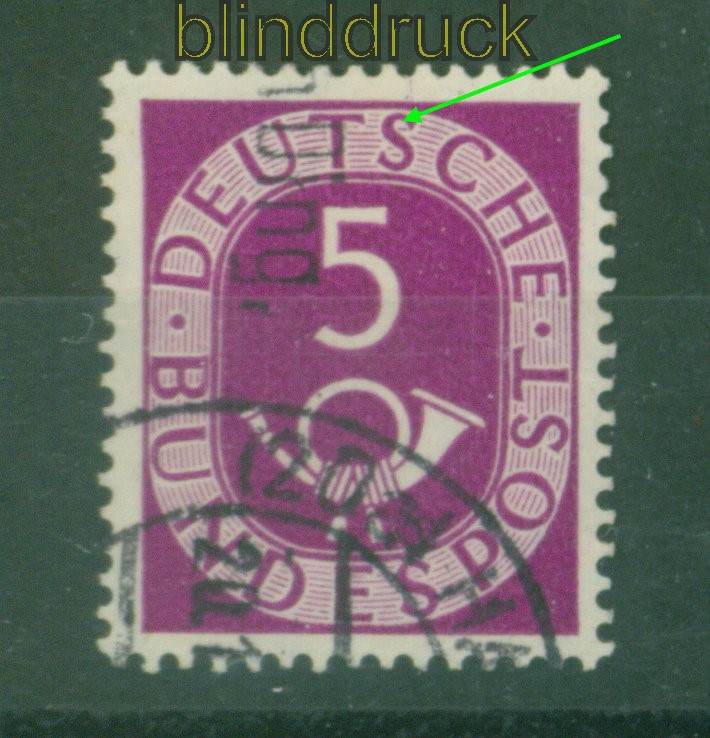 Bund Mi # 125 II gestempelt 5 Pfg. Posthorn mit Plattenfehler (55865)