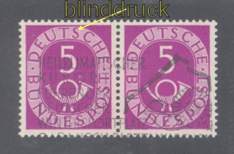 Bundesrepublik Mi # 125 II gestempelt im waagerechten Paar 5 Pfennig Posthorn im waagerechten Paar mit Plattenfehler II: oberste Schraffe im S von Deutsche fehlt gestempelt Erhaltung siehe Scan