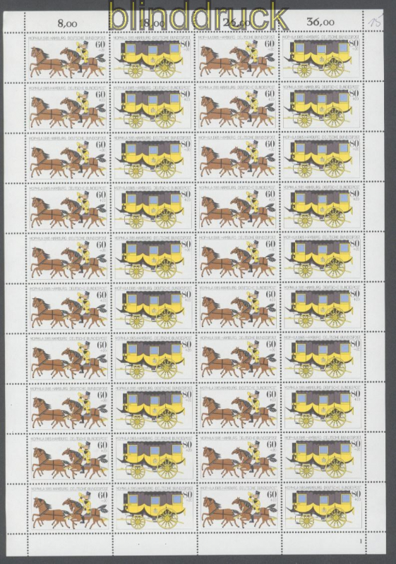 Bundesrepublik Mi # 1255/56 kompletter postfrischer zusammendruckbogen Internationale Briefmarkenausstellung MOPHILA 1985 in Hamburg kompletter Zusammendruckbogen postfrisch Erhaltung siehe Scan