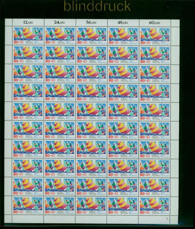 Bundesrepublik Mi # 1310/11 postfrisch Sporthilfe in kompletten 50-Bögen Sporthilfe 1987: Segelweltmeisterschaften in Kiel komplette Ausgabe in postfrischen 50er-Bögen nicht gefaltet, nicht beschriftet Erhaltung siehe Scan