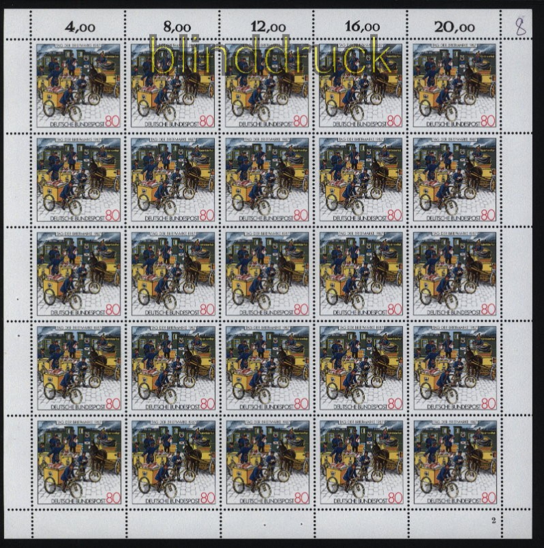 Bund Mi # 1337 postfrisch kompletter Bogen mit 1337 I Plattenfehler (52648)