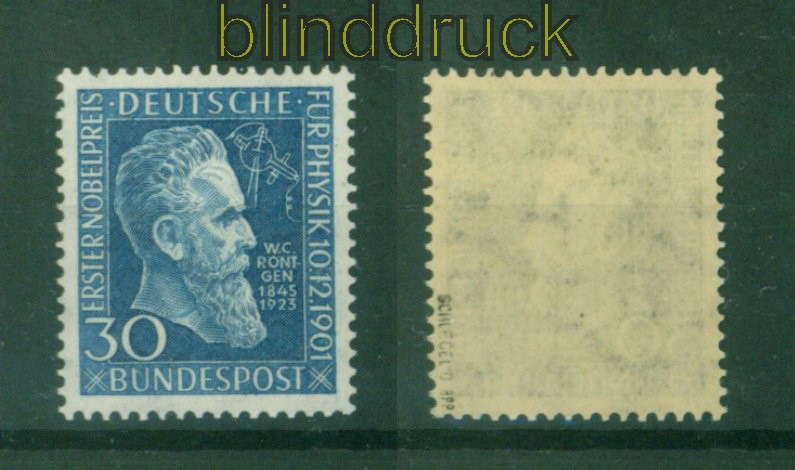 Bundesrepublik Mi # 147 postfrisch Röntgen gepr. Schlegel BPP 30 Pfennig Röntgen 50. Jahrestag der Verleihung des Nobelpreises an Wilhelm Röntgen postfrisch gepr. Schlegel BPP Erhaltung siehe Scan