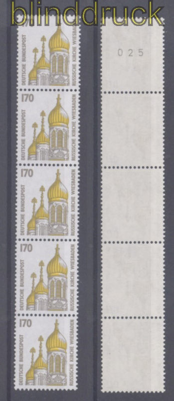 Bundesrepublik Mi # 1535 R postfrischer 5er-Streifen Sehenswürdigkeiten 170 Pfg. Sehenswürdigkeiten (X) 5er-Streifen mit Nummer 025 postfrisch Erhaltung siehe Scan