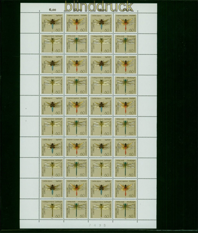 Bundesrepublik Mi # 1545/52 postfrisch Libellen im kompletten Zusammendruck-Bogen Libellen komplette Ausgabe in postfrischen Zusammendruck-Bogen nicht gefaltet, nicht beschriftet Erhaltung siehe Scan