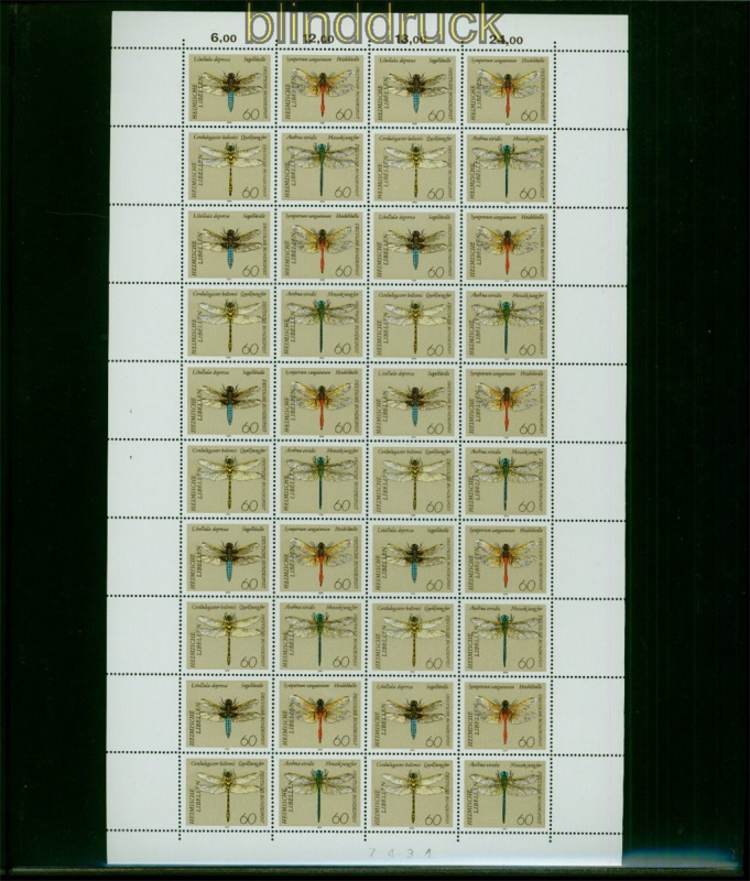 Bundesrepublik Mi # 1545/52 postfrisch Libellen im kompletten Zusammendruck-Bogen Libellen komplette Ausgabe in postfrischen Zusammendruck-Bogen nicht gefaltet, nicht beschriftet Erhaltung siehe Scan