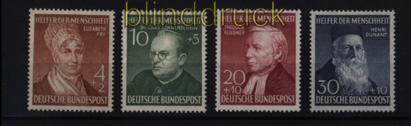 Bundesrepublik Mi 156/59 postfrisch Wohlfahrt 1952 Wohlfahrt 1952 Helfer der Menschheit komplette Ausgabe postfrisch Originalgummi Erhaltung siehe Scan