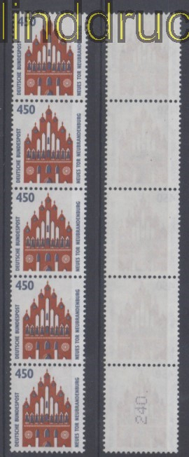 Bundesrepublik Mi # 1623 R I SWK 5er-Streifen postfrisch 450 Pfg. Sehenswürdigkeiten (XII) 5er-Streifen postfrisch Erhaltung siehe Scan