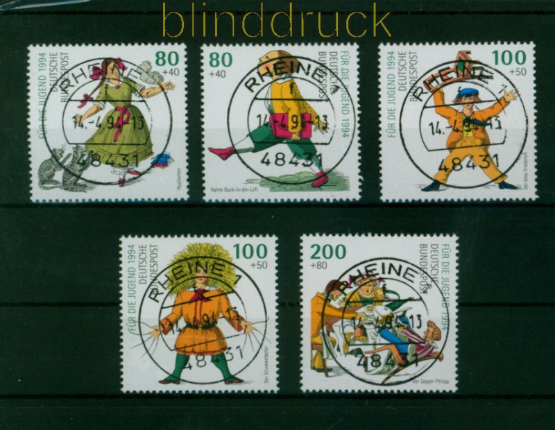 Bundesrepublik Mi # 1726/30 gestempelt Jugend 1994 Jugendausgabe 1994: 100. Todestag von Dr. Heinrich Hoffmann komplette Ausgabe gestempelt Erhaltung siehe Scan