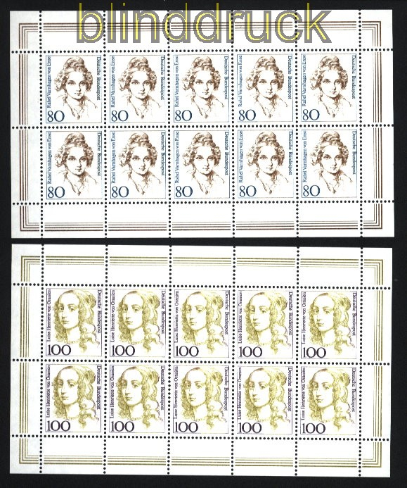 Bundesrepublik Mi # 1755/56 postfrisch Frauen im 10er-Bogen 80 und 300 Pfg. Frauen der Deutschen Geschichte (XV) im kompletten 10er-Bogen postfrisch Erhaltung siehe Scan