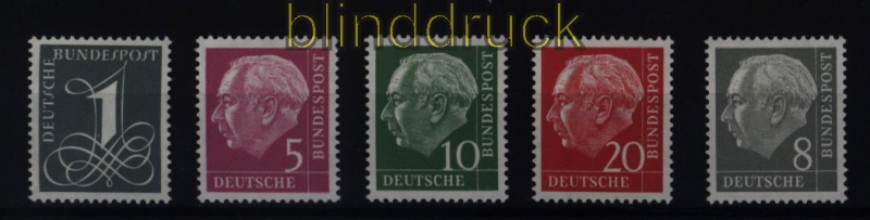 Bundesrepublik Mi # 179 Y/285 Y Heuss liegendes Wasserzeichen postfrisch Heuss I Dauerserie 5 Werte mit liegendem Wasserzeichen mit Mi # 285 Y komplette Ausgabe postfrisch Erhaltung siehe Scan