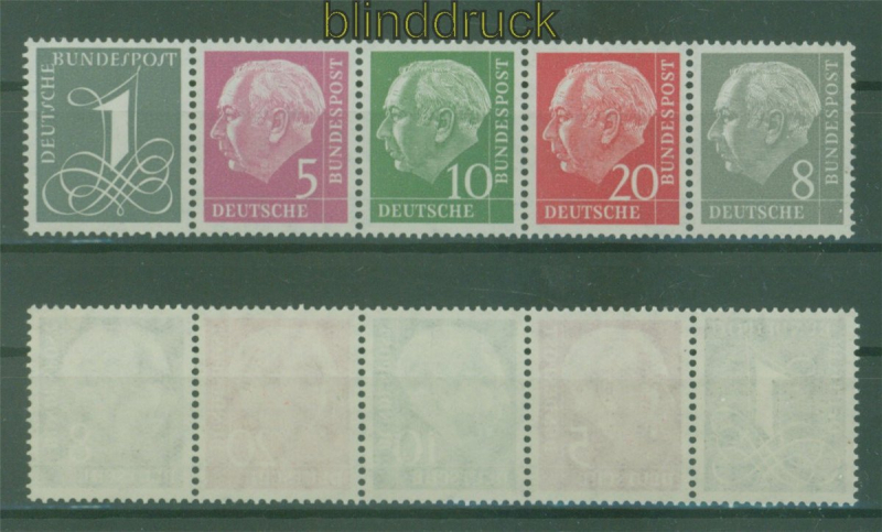 Bundesrepublik Mi # 179 Y/285 Y postfrisch Heuss liegendes Wasserzeichen Heuss I Dauerserie 5 Werte mit liegendem Wasserzeichen mit Mi # 285 Y komplette Ausgabe im 5er-Streifen postfrisch Erhaltung siehe Scan