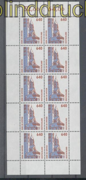 Bundesrepublik Mi # 1811 kompletter 10er-Bogen postfrisch 640 Pfennig Freimarke Sehenswürdigkeiten DOM zu Speyer kompletter postfrischer 10er-Bogen einwandfreie Erhaltung siehe Scan
