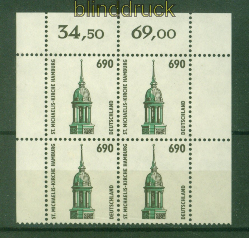 Bundesrepublik Mi # 1860 postfrisch Sehenswürdigkeiten 4er-Block Oberrand 690 Pfennig Sehenswürdigkeiten SWK postfrisches 4er-Block vom Oberrand Erhaltung siehe Scan