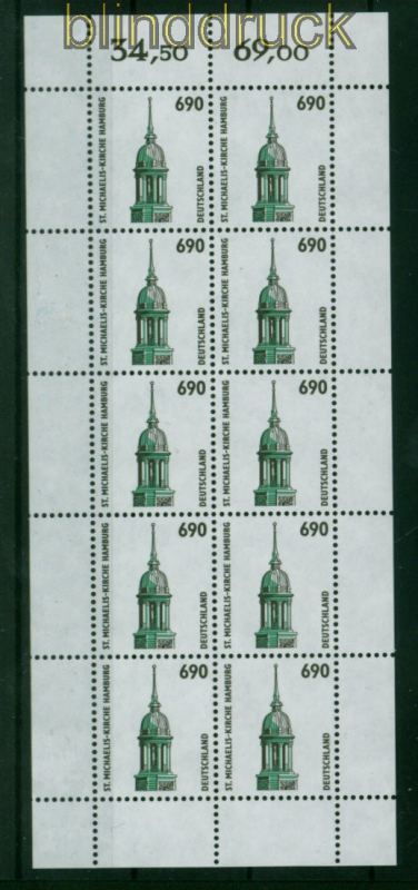 Bundesrepublik Mi # 1860 kompletter 10er-Bogen postfrisch 690 Pfennig Freimarke Sehenswürdigkeiten St. Michaelis-Kirche in Hamburg kompletter postfrischer 10er-Bogen einwandfreie Erhaltung siehe Scan