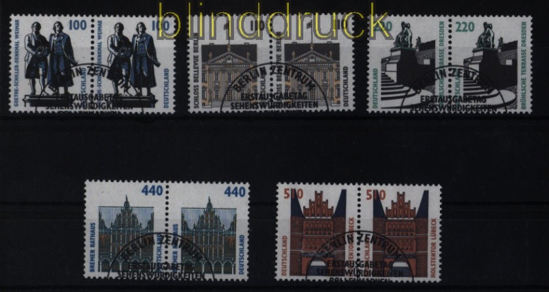 Bundesrepublik Mi # 1934/38 A waagerechte Paare Sonderstempel Sehenswürdigkeiten SWK komplette Ausgabe waagerechte Paare Sonderstempel SSt. Erhaltung siehe Scan