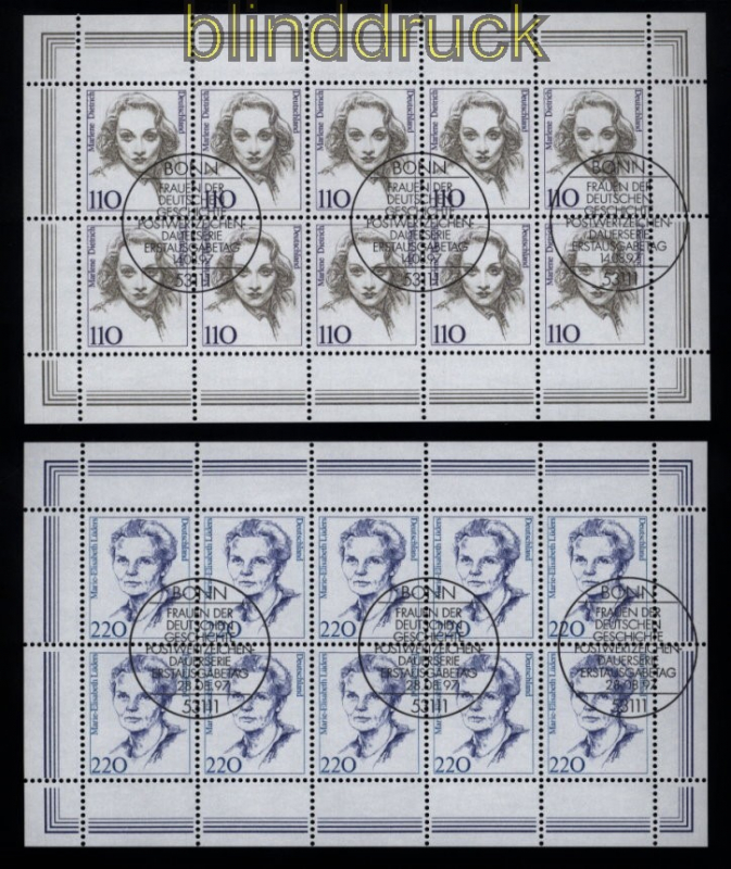 Bundesrepublik Mi # 1939/40 gestempelt Frauen komplette 10er-Bögen 110 und 220 Pfg. Frauen der Deutschen Geschichte (XVI) in kompletten 10er-Bögen gestempelt mit Sonderstempel SSt. Erhaltung siehe Scan