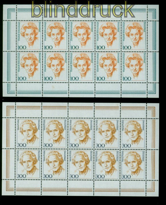Bundesrepublik Mi # 1955/56 postfrisch Frauen komplette 10er-Bögen 100 und 300 Pfg. Frauen der Deutschen Geschichte (XVII) in kompletten 10er-Bögen postfrisch Erhaltung siehe Scan