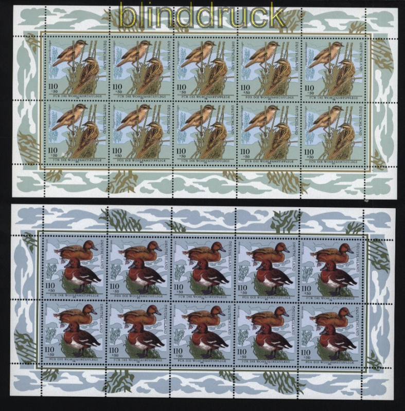 Bundesrepublik Mi # 2015/19 postfrisch Wohlfahrt 1998 Bedrohte Vogelarten komplette Ausgabe in postfrischen 10er-Bögen einwandfreie Erhaltung siehe Scan