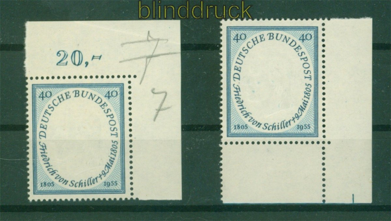 Bundesrepublik Mi # 210 postfrisch zwei Eckrandmarke Felder 10 und 50 Friedrich von Schiller 40 Pfennig 150. Todestag von Friedrich von Schiller zwei Eckrandmarken Felder 10 und 50 einwandfrei postfrisch nicht gefaltet einwandfreie Erhaltung siehe Scan