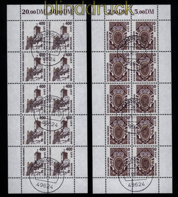 Bundesrepublik Mi # 2210/11 A kompletter 10er-Bogen gestempelt Sehenswürdigkeiten SWK mit Doppelnominale DM/Euro komplette Ausgabe komplette 10er-Bögen sauber gestempelt Löningen einwandfreie Erhaltung siehe Scan