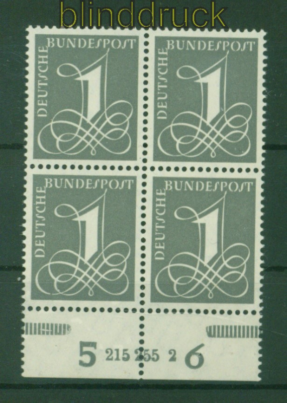 Bundesrepublik Mi # 226 y HAN postfrischer 4er-Block vom Unterrand mit HAN 1 Pfennig Ziffernzeichnung postfrischer 4er-Block vom Unterrand mit HAN 215 255 2 nicht gefaltet Erhaltung siehe Scan