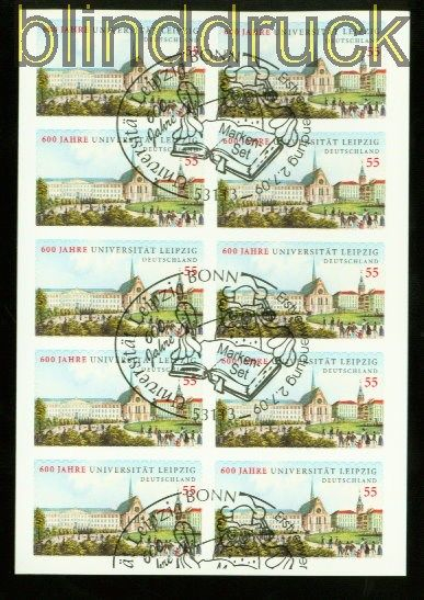 Bundesrepublik Mi # 2747 Folienblatt # 4 Universität Leipzig Ersttagssonderstempel 55 C 600 Jahre Universität Leipzig komplettes Folienblatt Ersttagssonderstempel Bonn Erhaltung siehe Scan
