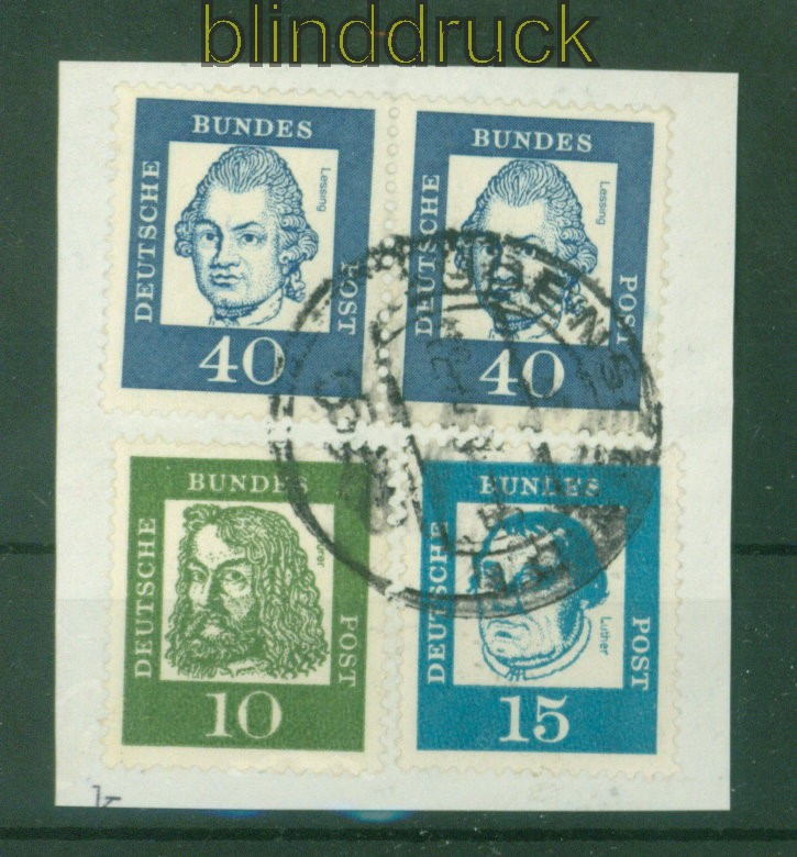 Bundesrepublik Mi # 355 y gestempelt 40 Pfg. Bedeutende Deutsche waagerechtes Paar 40 Pfg. Bedeutende Deutsche fluoreszierendes Papier im gestempelten waagerechten Paar mit weiteren Werten auf Briefstück Erhaltung siehe Scan
