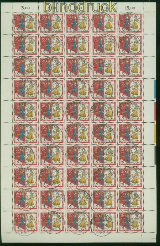 Bundesrepublik Mi # 485/88 gestempelt im kplt. Bogensatz Fürstenau 14.5.1966 Wohlfahrt 1965 Wohlfahrt 1965: Märchen der Gebrüder Grimm im kompletten Bogensatz jede Marke zentrisch gestempelt Fürstenau 14.5.1966 ungefaltet Erhaltung siehe Scan