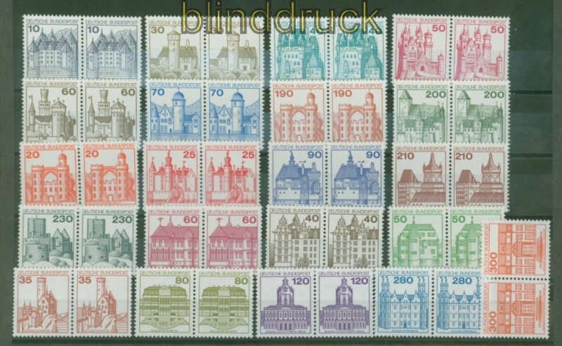 Bundesrepublik Burgen & Schlösser waagerechte Paare postfrisch Dauerserie Burgen und Schlösser komplette Ausgabe waagerechte Paare postfrisch Erhaltung siehe Scan