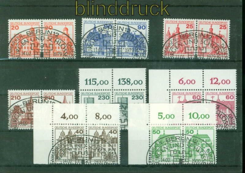 Bundesrepublik Mi # 995/99, 1028, 1037/38 Sonderstempel Burgen und Schlösser waagerechte Paare komplette Ausgabe in waagerechten Paaren Sonderstempel einwandfreie Erhaltung siehe Scan
