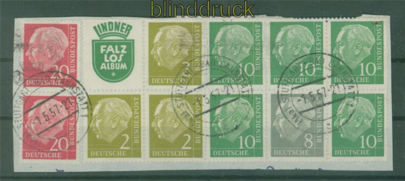 Bundesrepublik Zusammendruck Markenheftchenblatt Mi # 7 gestempelt Heuss Reklame Lindner Heftchenblatt Heuss mit Reklamefeld Lindner Falzlos ohne Heftchenblattrand gestempelt auf Briefstück Erhaltung siehe Scan