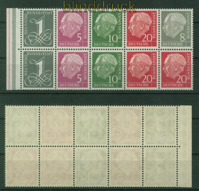 Bundesrepublik Zusammendruck Markenheftchenblatt Mi # 8 Y II postfrisch liegendes Wasserzeichen Heftchenblatt Heus Nachauflage mit Heftchenblattrand breite graue und eine schmale rosalila Strichelleiste liegendes Wasserzeichen postfrisch Erhaltung siehe Scan