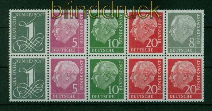 Bundesrepublik Zusammendruck Markenheftchenblatt Mi # 8 Y II postfrisch liegendes Wasserzeichen Heftchenblatt Heus Nachauflage ohne Heftchenblattrand liegendes Wasserzeichen postfrisch Erhaltung siehe Scan