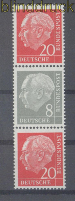 Bundesrepublik Zusammendruck Mi # S 52 Y II postfrisch Heuss 8 + 20 + 8 Pfg. Heuss liegendes Wasserzeichen senkrechter Zusammendruck postfrisch Erhaltung siehe Scan