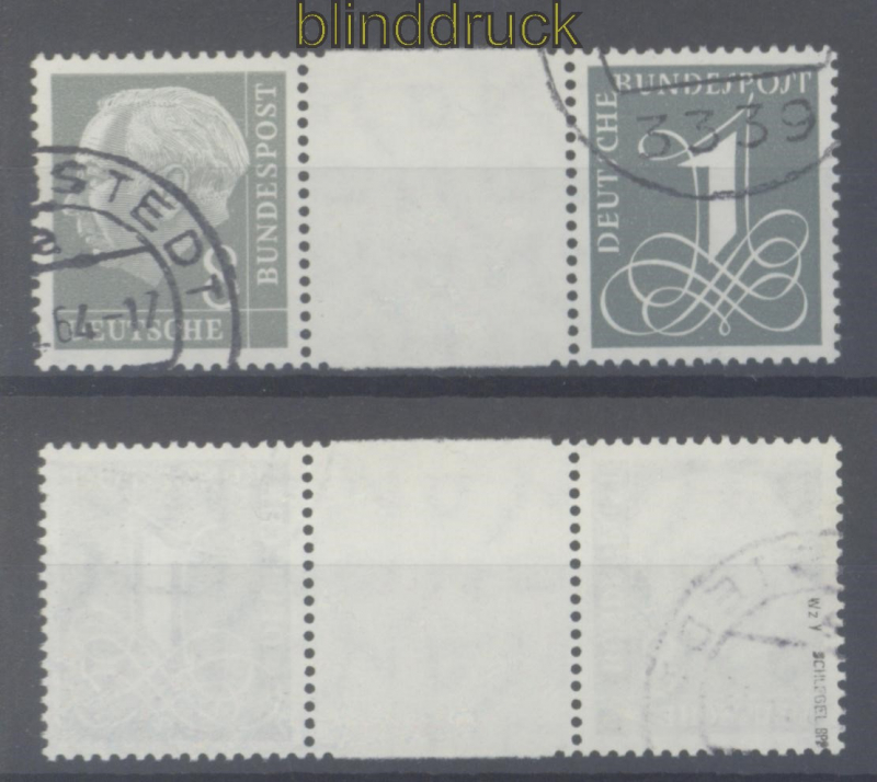 Bundesrepublik Zusammendruck Mi # WZ 15 b Y II gestempelt Heuss gepr. Schlegel BPP 8 + Z + 1 Pfg. Heuss liegendes Wasserzeichen waagerechter Zusammendruck mit Zwischensteg Zwischensteg ohne Strichelleiste gestempelt Type II geprüft Schlegel BPP einwandfreie Erhaltung siehe Scan