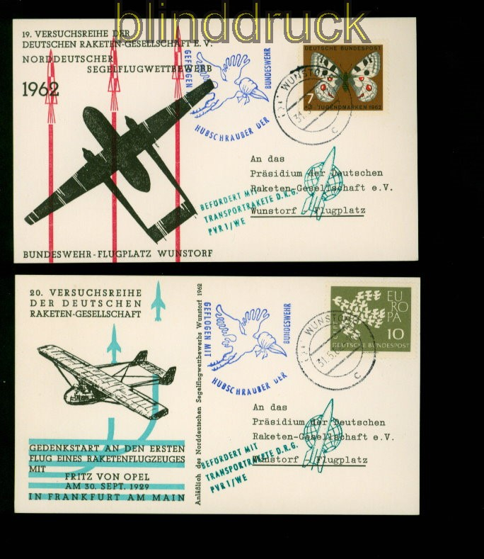 Bundesrepublik und Österreich 8 verschiedene Belege mit Raketenpost aus 1962 und 1963 acht Beleg alle mit Bezug auf Raketenpost