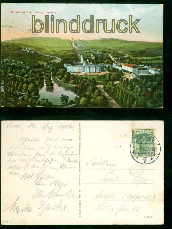 Hessen Cassel-Wilhelmshöhe farb-AK Königl. Schloss 1912 nach Aurich Karte gelaufen aus Cassel 11.8.1912 nach Aurich Erhaltung siehe Scan