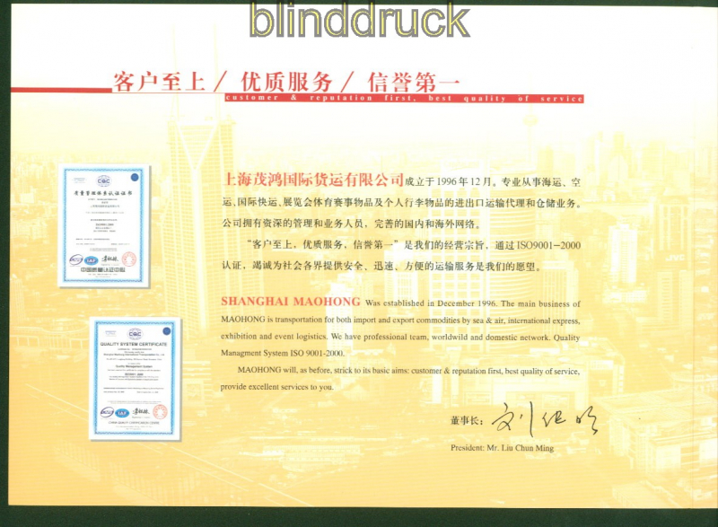 China Mi # 3551 postfrisch Sonderbogen Shanghai Maohong im Folder (56069)