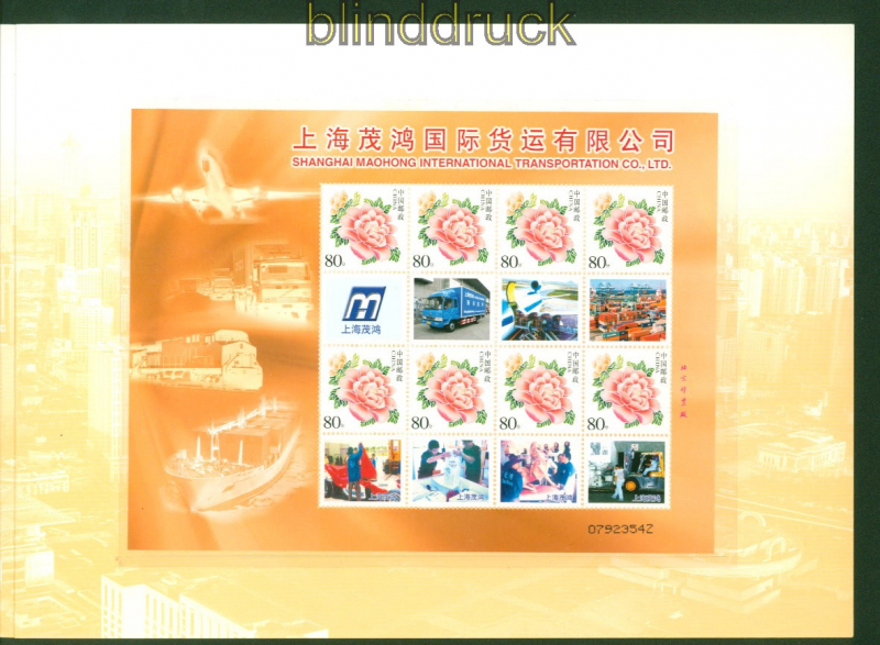 China Mi # 3551 postfrisch Sonderbogen Shanghai Maohong im Folder Marke für Sonderbögen: Pfingstrose Sonderbogen der Shanghai Maohong International Transportation Co. LTD komplette Ausgabe postfrisch im Folder Erhaltung siehe Scan