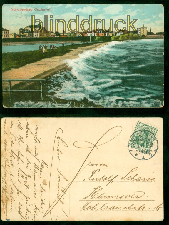 Niedersachsen Cuxhaven Nordseebad farb-AK Teilansicht 1913 nach Hannover Karte gelaufen aus Cuxhaven 25.5.1913 nach Hannover Erhaltung siehe Scan