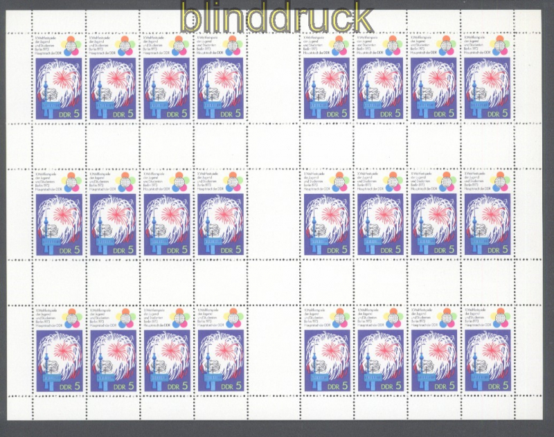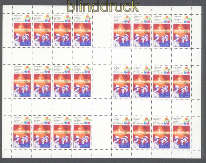 Deutsche Demokratische Republik Markenheftchenbogen Mi # 16 A und 17 A postfrisch Weltfestspiele X. Weltfestspiele der Jugend und Studenten Berlin 1973 zwei komplette Markenheftchenbogen postfrisch beide MHB an allen Rändern durchgezähnt Erhaltung siehe Scan