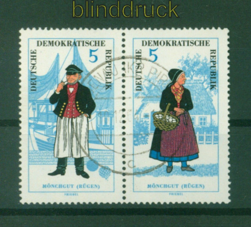 Deutsche Demokratische Republik DDR Mi # 1074/75 WZd 145 gestempelt Volkstrachten (I) Tagesstempel Volkstrachten (I) 1964 waagerechter Zusammendruck mit Tagesstempel Erhaltung siehe Scan