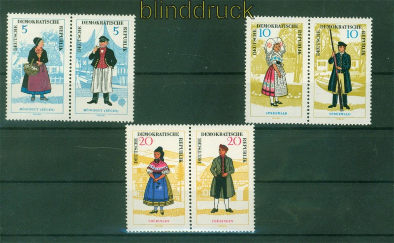 Deutsche Demokratische Republik Mi # 1074/79 drei postfrische Paare Volkstrachten (I) komplette Ausgabe in drei waagerechten Zusammendruckpaaren postfrisch Erhaltung siehe Scan