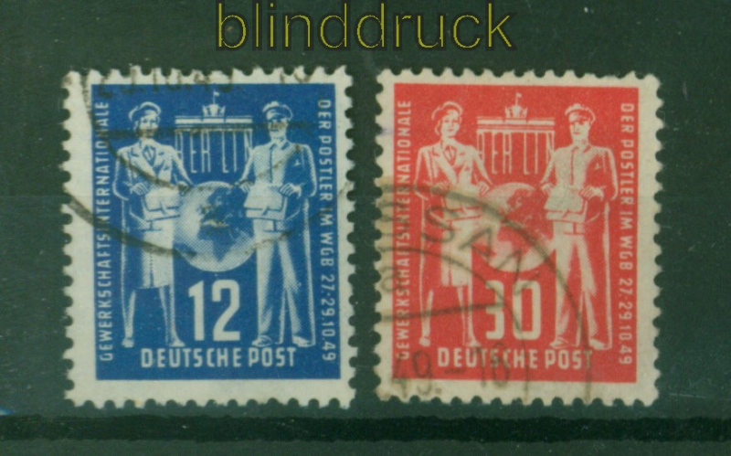 Deutsche Demokratische Republik DDR Mi # 243/44 gestempelt Gewerkschaftsvereinigung Gründungskonferenz der Internationalen Gewerkschaftsvereinigung für die Post im Weltgewerkschaftsbund komplette Ausgabe sauber rudgestempelt aus dem Bedarf Erhaltung siehe Scan