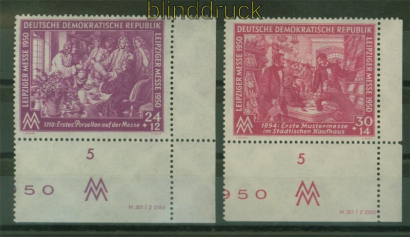Deutsche Demokratische Republik Mi # 248/49 DV postfrisch Leipziger Frühjahrsmesse mit Druckvermerk Leipziger Messe 1950 zwei Eckrandmarken mit Druckvermerk einwandfrei postfrisch gute Erhaltung siehe Scan