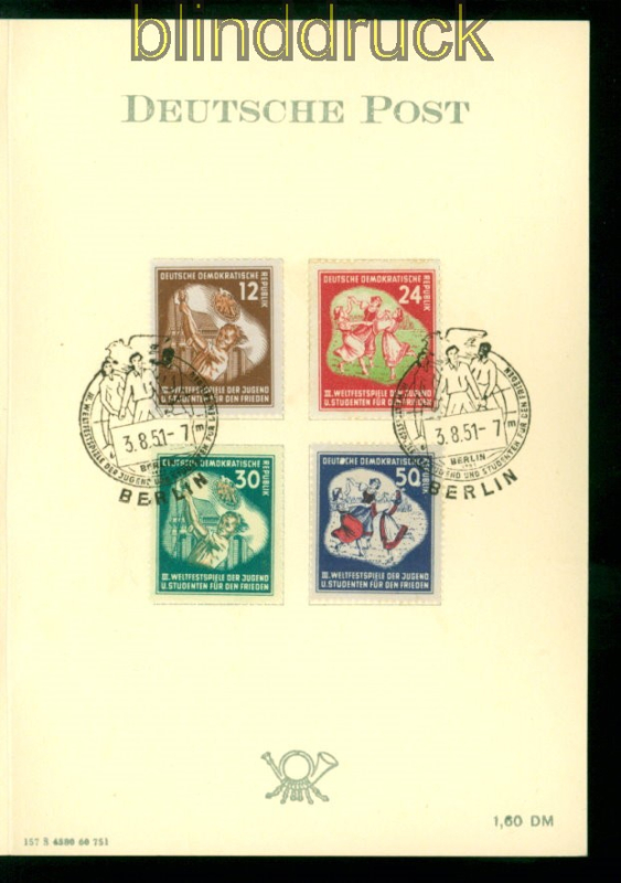 Deutsche demokratische Republik Mi # 289/92 amtliche Faltkarte III. Weltspiele der Jugend SSt. III. Weltfestspiele der Jugend und Studenten für den Frieden amtliche Faltkarte Marken entwertet mit entsprechendem Sonderstempel Erhaltung siehe Scan