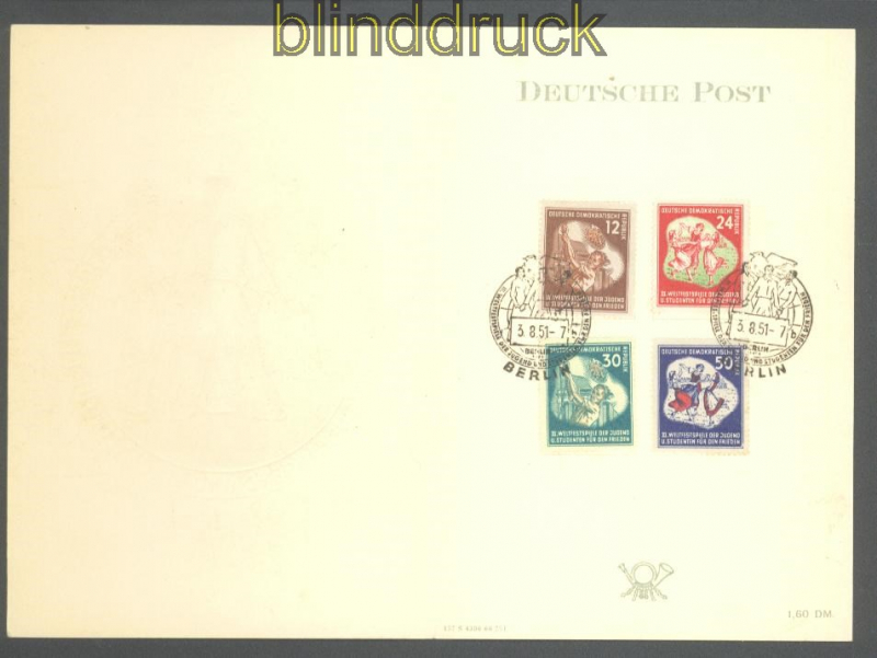 Deutsche demokratische Republik Mi # 289/92 amtliche Faltkarte III. Weltspiele der Jugend SSt. III. Weltfestspiele der Jugend und Studenten für den Frieden amtliche Faltkarte Marken entwertet mit entsprechendem Sonderstempel Erhaltung siehe Scan