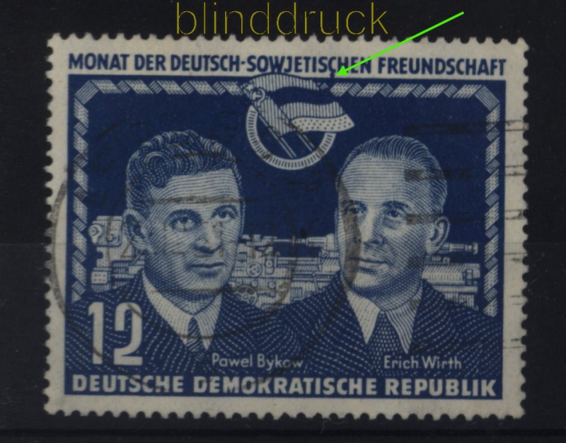 Deutsche Demokratische Republik Mi # 296 I gestempelt Deutsch-Sowjetische Freundschaft 12 Pfg. Deutsch-Sowjetische Freundschaft mit Plattenfehler I: Felck unten am C von sowjetischen gestempelt Erhaltung siehe Scan